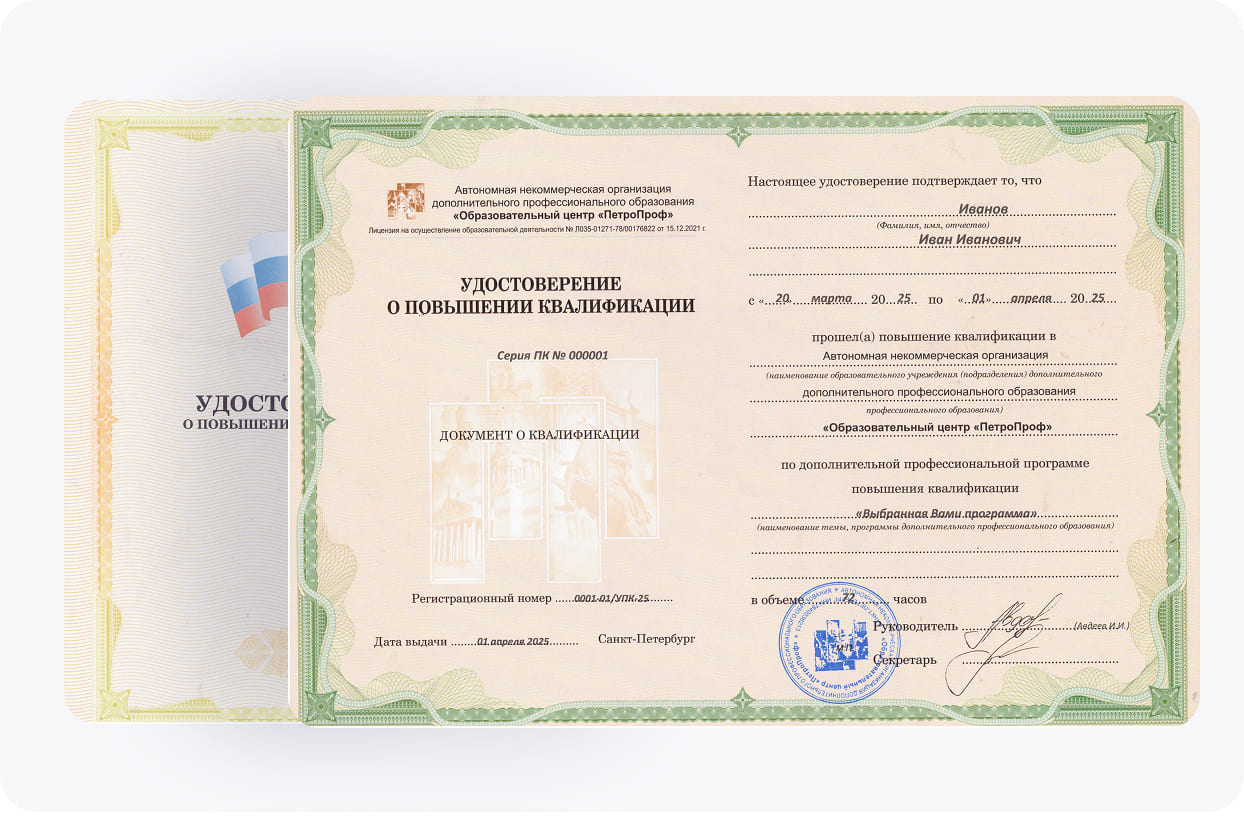 Пройти повышение квалификации в Градостроительстве могут действующие специалисты, имеющие профессиональное или высшее образование. В "ПетроПроф" вас ждут сжатые сроки, эффективное переобучение и поддержка опытного педагогического состава. Работодатели всегда обращают внимание на наличие квалификации и профобразования у кандидатов на должность. Освоение наших курсов откроет перед выпускниками новые карьерные перспективы и возможности трудоустройства в интересующие организации. После окончания обучения им будут выданы документы об образовании, отражающие имеющиеся компетенции и навыки для ведения профессиональной деятельности.